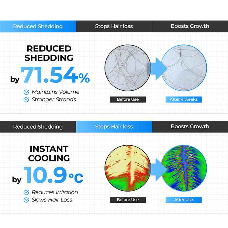 - اسید سالیسیلیک، دکس-پانتنول و ال-منتول به همراه آب یخچال غنی از مواد معدنی، ریشهها را تقویت کرده و رشد مو را تسریع میکند.