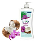 لوسیون بدن نرم کننده Softening از برند محبوب سینت ایوز St.Ives با عصاره و رایحه ی شیر نارگیل و گل ارکیده به خوبی پوست شما را مرطوب می کند. این لوسیون یک مرطوب کننده صد در صد طبیعی است که اثری از چربی روی بدن باقی نمی گذارد.عصاره طبیعی ارکیده موجود در این لوسیون، پس از استفاده به آرامی جذب پوست شده و عطر خوب این گل خوشبو را روی بدن به جای میگذارد و به شما حس زیبای تازگی را هدیه میدهد. در ساخت این محصول از مرطوب کنندههای صد در صد گیاهی چون گلیسیرین گیاهی، روغن سویا، عصاره نارگیل و ارکیده استفاده شده است و هیچ گونه ماده حیوانی در آن به کار نرفته است و مورد تایید متخصصان پوست می باشد.