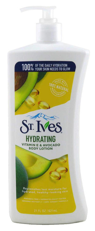 شرکت سینت ایوز Sti.Ives لوسیونهای متنوعی دارد که با توجه به نیاز و نوع پوست میتوان بهترین را انتخاب کرد. لوسیون آبرسان حاوی آووکادو و ویتامین E سینت ایوز، به دلیل سازگاری و ملایم بودن، باعث هیچگونه آلرژی، حساسیت، سنگینی و خارش بر روی پوست نمیشود.